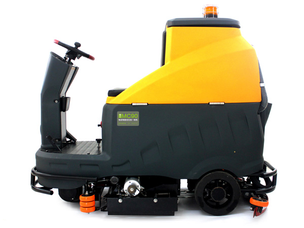 高端機器 集掃地車和洗地機于一體MC90電動駕駛式掃洗一體機是一款大型駕駛式掃洗一體機,集地面固體垃圾清掃、地面污垢洗刷和吸干為一體,一次性完成3種作業類型,一臺MC90相當于一臺掃地車和一臺洗地機,可大大提高工作效率。